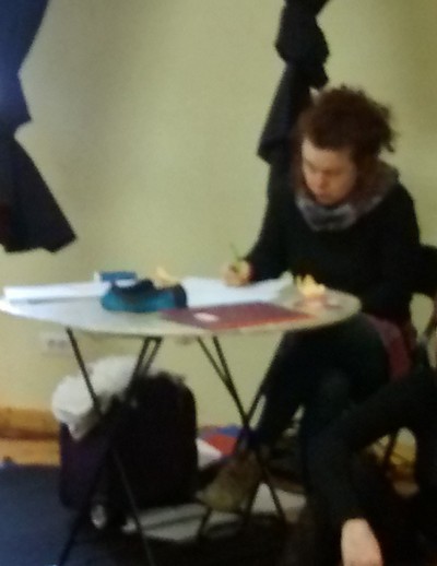 La dessinatrice graphiste s’appelle Anne, elle dessine les personnages qui vont être projetés pendant le spectacle sur l’écran,